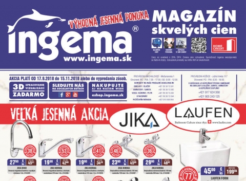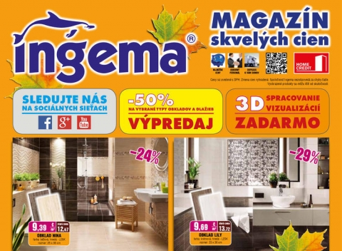 Stavebný materiál za najlepšie ceny, najširší výber keramických obkladov a dlažieb, vane, sprchové kúty, drezy aj armatúry. To všetko a ešte viac nájdeš v novom online letáku Ingema. Bývaj za najlepšie ceny s letákmi na Odpadneš.sk.