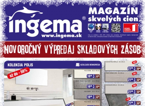 Stavebný materiál za najlepšie ceny, najširší výber keramických obkladov a dlažieb, vane, sprchové kúty, drezy aj armatúry. To všetko a ešte viac nájdeš v novom online letáku Ingema. Bývaj za najlepšie ceny s letákmi na Odpadneš.sk.